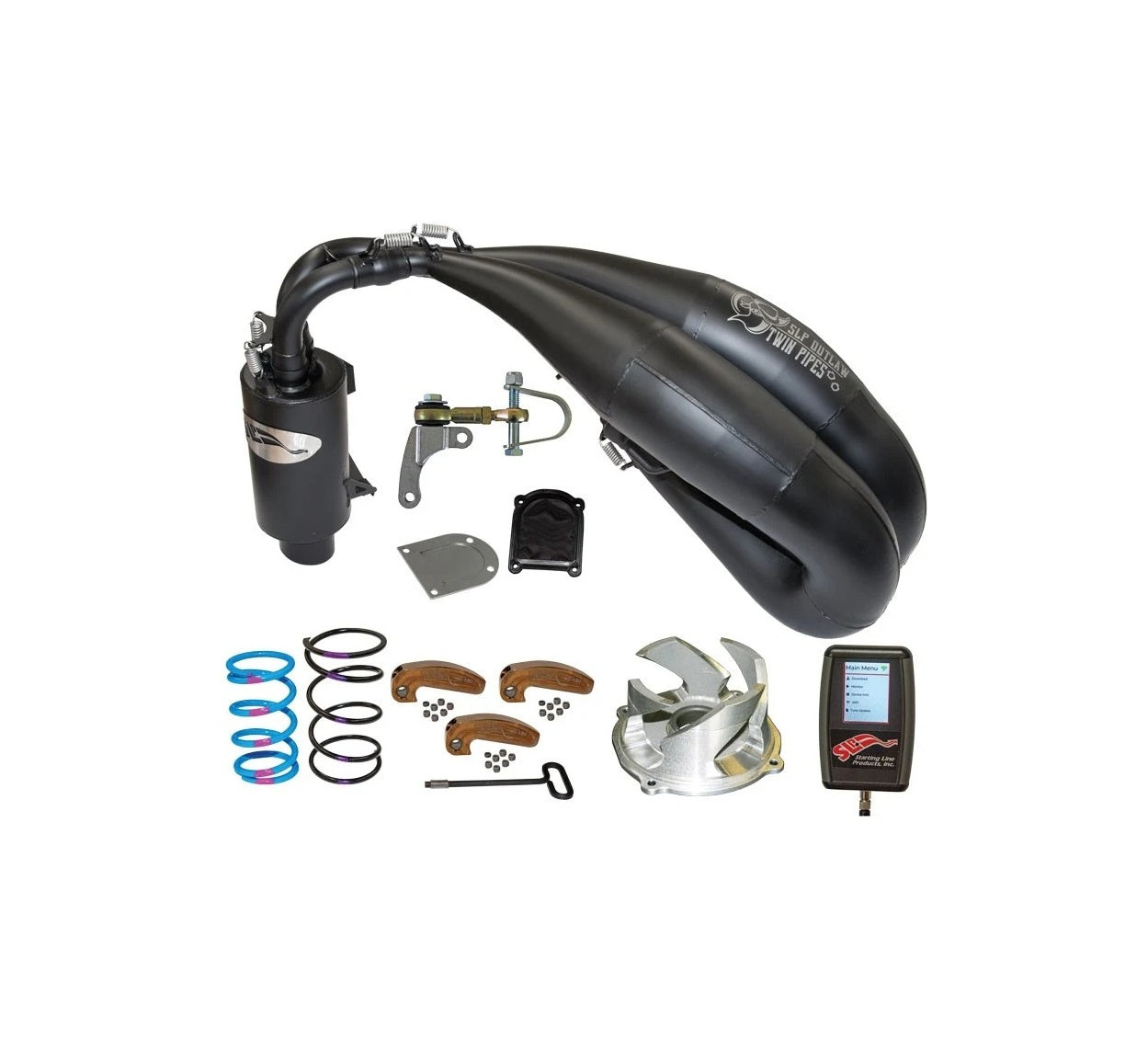 The toughest Outlaw on snow just got tougher and meaner! SLP Outlaw Stage 2 Kit combines the 17 horsepower delivered from our Outlaw Twin Pipes with the phenomenal 5-7 horsepower mid-range and 6 horsepower peak performance of SLP Power Dome Billet Heads for a fierce combination. This added performance and instantaneous throttle response makes this kit ideal for the ultimate performance seeker. Kit also utilizes a Flash Tuner, Power Shift Clutch Kit, High Flow Intake Kit, Hot Air Elimination Kit and a Torque Arm.